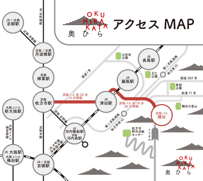 近鉄「京都」駅→近鉄「新田辺」駅→JR「京田辺」駅→JR「津田」駅