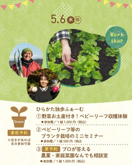 5月6日にひらかた独歩ふぁーむが参加します!野菜にふれ、育てる楽しさを体験できるプログラムが揃います。